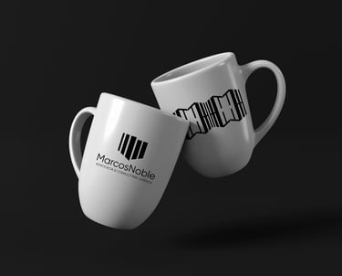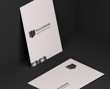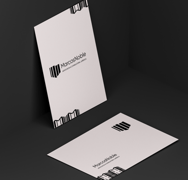 Por meio de uma junção do M e do N, através do contraste do P&B (Preto e Branco), foi elaborado um elemento gráfico abstrato que representa a solidez e consistência, presentes na essência do Marcos Noble.
